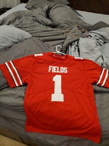 Justin Fields Jersey Ohio State Buckeyes Size - XL | eBay from i.ebayimg.com Jun 15, 2021 · the chicago bears have a new no. The new bears quarterback made an appearance at the cubs game against the cardinals on friday and received an ovation from fans. 5 best selling jersey in the nfl ahead of tom brady, patrick mahomes, aaron rodgers, justin herbert, trevor lawrence, and joe burrow. Welcome the second overall draft pick to chicago with justin fields bears jerseys. Fantasy football start your season today! Jun 11, 2021 · the city of chicago can't get enough of justin fields. Show the rookie the proper love with a new nike jersey from fanatics today. We officially have our first look at the team in full uniform.